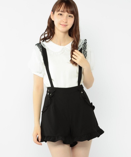 エレガントなレース付きのサスペンダーがお洒落なキュロット。裾のフリルが華やかなデザイン。ポケット周りには、リボンのあしらいもかわいいアクセント。フェミニンでロマンチックなコーディネートが完成するアイテムです。----------------------------------------------------------▶商品のお気に入り登録完売カラーの再入荷通知やラスト1点の通知などお得なプライスダウンの情報も受け取ることができます。ぜひご登録ください◎▶ブランドのお気に入り登録新商品や再入荷など、いち早くブランドのお得な情報を受け取ることができます!ブランドのお気に入り登録も、ご一緒にお願い致します。----------------------------------------------------------▶ LODISPOTTO_official instagram ◀lodispotto_officialロディスポットブランド最新情報をいち早くお届けしています新作情報や着回しなど嬉しいニュースをいち早くお届けコーディネートやお得な情報も毎日配信中!インスタライブなどの配信もございますので、ぜひフォローしてくださいね!----------------------------------------------------------