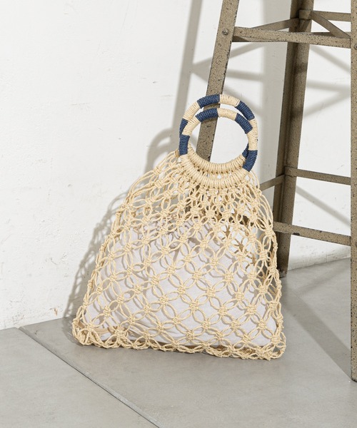 サマームード漂うこなれバッグ【ポイント】●涼し気なマクラメ編みがコーデに抜け感をプラス●デイリーユースにピッタリなナチュラルな素材感●持ち手のボーダーデザインが爽やかなアクセントに●巾着付きなので小物も安心して収納できます●巾着の内側にポケット付きなのも嬉しいポイント◆よりナチュラリーで爽やかなアイボリー◆シックな要素を併せ持つ大人ブラック※商品のお取り扱いに関しましては、商品に付属のアテンションカード、洗濯ネームをご覧ください。※撮影場所やお使いのモニター環境により若干お色味が異なる場合がございます。特にロケの撮影では明るく見える傾向にございます。 2021 spring&summer goods--------------------《Information》--------------------【商品のお気に入り登録】→カートに入れる右側の【♡マーク】をクリック!完売カラーの再入荷通知やラスト1点の通知、セールの通知を受け取ることができます。【ブランドのお気に入り登録】→ブランドタグのページから【♡お気に入りショップに追加】をクリック!新商品や再入荷など、ブランドのお得な情報をいち早く受け取ることができます。是非ご登録頂き、お買い物をお楽しみください◎<返品・キャンセルについて>・着用・洗濯後の返品は致しかねます。・商品到着後、着用前に商品を確認して頂きますようお願い致します。