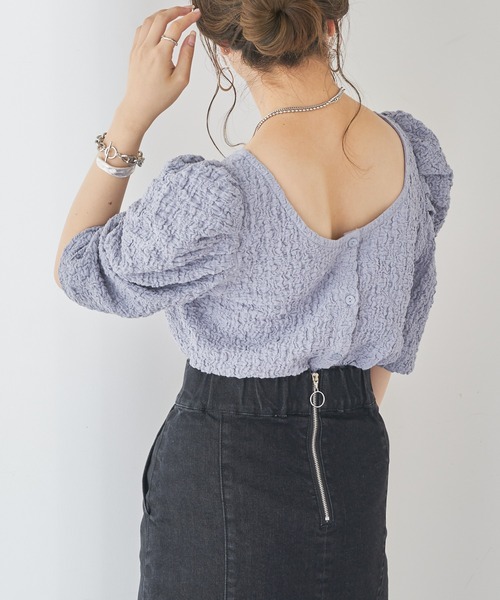 【デザイン】ジャガードデザインでカットソーなので肌にくっつくような不快感もなく着心地も良く過ごしやすい1着です。パワショルですがカットソー素材なので甘すぎない印象で着れるのがポイントです。首元はすっきり開く仕様なのでこれからの季節も軽やかな印象に。5分袖丈なので季節の変わり目にも着て頂きやすく腕を出すのに抵抗がある方や室内で過ごす際などにも絶妙に使い勝手の良いトップスです。【コーディネート】フロントボタンの開閉が可能なので、1枚で着ても羽織りとしてもお召し頂く事ができます。着丈は短すぎないのでボトムスへのタックインもしやいです。首元がすっきりと開くデザインなので、インパクトのある大ぶりのネックレスをプラスワンすると今年らしさがあるスタイリングになります。▼お気に入り登録のおすすめ【気になるアイテムを登録】ハートをクリックしてお気に入りに登録すると完売カラーの再入荷やラスト1点の通知、セールの通知を受けとることができます。【ブランドを登録】新商品や再入荷、セール通知など、いち早くブランドの情報を受けとることができます。是非ご利用頂き、お買い物をお楽しみ下さい。▼商品について・サイト上のカラー名と、お届け商品に記載されているカラー名が異なる場合がございます。・商品の色味は、撮影場所や光のあたり具合などにより色味が違って見える場合がございます 。また、お客様のお使いのPCのモニター環境などにより色味が違って見える場合がございます。予めご了承の上ご注文下さい。▼返品・キャンセルについて・着用、洗濯後の返品、交換は致かねます。・商品到着後、着用前に商品を確認して頂きますようお願い致します。
