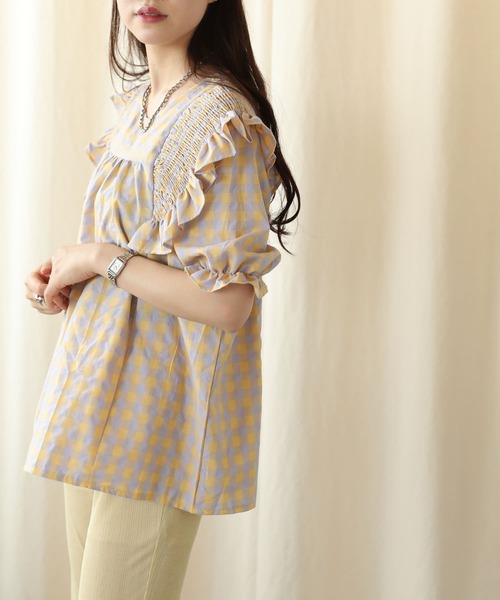 2021 Spring&Summer item大胆なフリルディティールがかわいい...切替デザインでスタイルアップも叶うアンティークシャツブラウス●配色チェックでレトロな雰囲気●たっぷりギャザーで存在感◎●トレンドのビッグショルダー×ボリューム袖シャツ●胸元の切り替えデザインとAラインシルエットで体のラインが気にならない●タックイン、アウトどちらも相性抜群<素材特性・シルエット>素材:表情のあるシャツ生地仕様:袖にフリルディティール、バックボタン裏地:なし 透け感:なし 光沢感:なし厚さ:普通 サイズ感:普通<コーディネート>デザイン性のあるアイテムなので、シンプルにストレートデニムやスラックスと合わせるだけでも雰囲気抜群。画像のようにタイトスカートにタックインして着ても女性らしくトレンド感のあるコーディネートが完成します。とことんオシャレを楽しみたいときには、カラーパンツやプリーツパンツと合わせると差のつくスタイリングに。また、カジュアルダウンしたいときにはコンバーススニーカーや、ボリュームソールサンダルとの組み合わせも〇!韓国モードに振りたいときにはバケットハットやボリュームソールのスポーツサンダルのような小物使いがオススメ。【PUBLUX/パブリュクス】永遠のベーシックも、定番なものも、いくつもの時代を経て進化し続けている。その瞬間瞬間でいまの気分を大切に、なりたい自分になれたら。自由にFASHIONを楽しみ、豊かな心を保てることができたら。そんな願いとともに進化しNEUTRAL,STREET,VINTAGEをMODEに再現した新たなPUBLUXが始まります。※画像の商品は光の照射や角度により、実物と色味が異なる場合がございます。また表示のサイズ感と実物は若干異なる場合もございますので、予めご了承ください。※着用、お取り扱いの際は、商品についている品質表示とアテンションタグを必ずご確認下さい。▼商品のお気に入り登録▼再入荷、残り1点、セールなどの通知を受け取ることができます。▼ブランドのお気に入り登録▼新商品や再入荷、ショップのおすすめトピックスなど、いち早くブランドの情報を受け取ることができます。