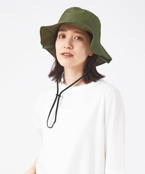 撥水・防水生地を使用した、レインハットが登場!レインシーンはもちろん、フェスやアウトドアからタウンユースにもおすすめ◎ユニセックスで使える優秀アイテムです。あご紐にドローコードがついているのでアクティブに動いても安心。裏面は通気性を高めるためメッシュ素材を使用しています。