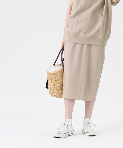 ノースリーブパーカーとセットアップで着られるアイテム。 ミニ裏毛の素材を使用しているので、着心地が良いです。バックスリットで抜け感を演出し、程よい丈感で足が細見えします。 Iラインシルエットですが、細すぎないシルエットで、着る人を選ばない一着。