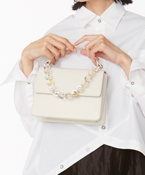 【ANEVER (アンエバー)】CASABLANCA_FLAP SHOULDER BAG■デザインアクリルビーズのチェーン飾りがアクセントのフラップ付きミニショルダー。取り外し可能なショルダーベルト付きで2WAY使用ができて便利です。長さ調節可能なバックル付きベルトなので、ボディクロスも、片肩掛けもできます。トレンド感のある小さめサイズで、お出かけにぴったりのコンパクトなデザイン。かっちりしたボックスシルエットで、かぶせ付きなので、中身が見えることなく安心して使用できます。内装は、裏地付きでファスナーポケットがひとついており、小物の小分けに便利です。カサブランカの花言葉は「純粋」、ビーズのチェーンが生み出す無垢な印象のミニショルダーバッグです。■素材LWG認証レザーを使用し、抗菌加工を施しています。ソフトな風合いに仕上げたスムースレザーです。(LWG:レザーワーキンググループ 安全性や環境対策を審査している団体。多くの海外ブランドが支持している。)■CASABLANCAの花言葉純粋※素材の特性上、同じ商品の中でも表現が異なります。一つ一つ異なった表情をお楽しみください。※画像はサンプルを使用しているため、実際にお届けする商品と仕様やサイズが異なる場合がございます。※画像の商品はサンプルです。実際の商品と色味、仕様、加工、サイズ、素材等が若干異なる場合がございます。※照明の関係により、実際よりもやや明るく見える場合がございます。またパソコンなどの環境により、若干製品と画像のカラーが異なる場合もございます。予めご了承くださいませ。