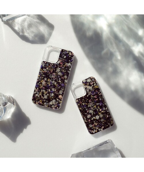 【ANEVER (アンエバー)】 iPhone12/12Pro ケース ■デザイン iPhonecase12/12Pro(6.1インチ)対応のクリアケースに、ドライフラワー入りのプレートを取り付けました。花の配置や色彩は一つとして同じ物は存在しない、世界にただ一つのケースです。充電や、各ボタンはケースを付けたまま操作が可能です。ケースの各ボタンは丸印の位置を押すと操作しやすいです。 ■素材 ドライフラワーを封入したアクリルシートから切り出して、丁寧に磨き上げ作成したオリジナルパーツです。一つ一つ花を摘み、丁寧に人の手で樹脂の中に閉じ込めた特別なプレート。土台のクリアケースの内側には小さなドット加工が施されており、iPhoneがケースにぴったりくっついてしまうのを防ぎ、グレア現象が起きにくい仕様になっています。 ※iPhone12/12Pro専用のケースになります。※耐久性は考慮していますが、高い位置から落とした場合は破損する可能性があります。 ※この商品は、iPhoneをはめるケースと、ドライフラワーの入ったアクリルシートを金具で取り付けたデザインとなっております。製品の特性上、iPhoneの装着・取り外しの際、iPhoneやアクリルシートへのダメージを軽減するために、ケースとアクリルシートの間に少しの隙間を持たせております。そのため、若干ではございますが、アクリルシートに動きが生じる場合がございますことご了承くださいませ。 ※反り返しがきく土台ケースを使用していますが、樹脂素材により着脱しづらい場合があります。予めご了承ください。 ※花を混入の際に出来る気泡が欠けたように見えますが、商品作成上のものであり品質に問題はありません。 ※iPhoneケース樹脂のドライフラワーの入り方により色味に個体差があります。予めご了承ください。 ※画像はサンプルを使用しているため、実際にお届けする商品と仕様やサイズが異なる場合がございます。 ※画像の商品はサンプルです。実際の商品と色味、仕様、加工、サイズ、素材等が若干異なる場合がございます。 ※照明の関係により、実際よりもやや明るく見える場合がございます。またパソコンなどの環境により、若干製品と画像のカラーが異なる場合もございます。予めご了承くださいませ。