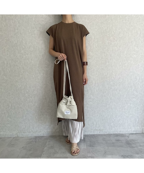 完売したTシャツワンピースのデザイン違いが登場! シンプルながらもロング丈なのでこなれ感をプラスしてくれます。 抜け感を演出する裾のスリットデザインは、パンツを合わせた今年らしい着こなしのレイヤードスタイルとも相性抜群♪ 綿100%でリラックスした着心地なので、デイリーにはもちろんおうち時間にも取り入れたくなる一品です。