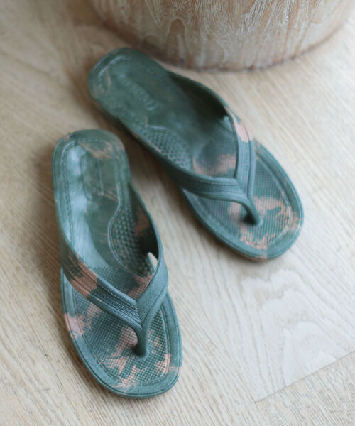 1度使うと手放せない実用性「漁業(従事者の履く)サンダル」としてそのタフネスな実用性から愛用者も多いサンダル、通称「ギョサン」。鼻緒とソールが一体成型されているため、非常に丈夫なうえ、水を扱う場所での使用を想定して設計されており、雨の日やタイルなどの上でも滑りにくい優れものです。業界トップクラスの<Pearl(パール印)>のギョサンはその実用性はもちろん、流れるような美しいフォルムとバリエーション豊富な高いデザイン性が人気を誇っています。安心の日本製で履き心地も抜群。1つあれば長年ご愛用頂ける、コストパフォーマンスにも優れたひと品です。サイドにプリントした魚モチーフと「B:」のロゴでさり気なく遊び心もプラス。それぞれ艶消しを施したマットなブラックとグリーンをメインとした、マーブル模様のデザインでご用意しました。*同シリーズの商品がございます品番:95-34-0035-946