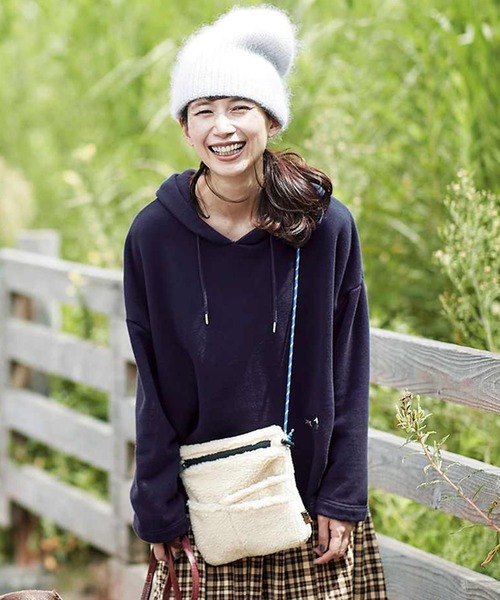 これからの季節ならではの、あったか素材を使ったサコッシュ。小ぶりなサイズ感ですが、使い勝手のいいポケットもしっかりついています。白いボアにブルーのコード遣いが映える、着こなしのアクセントになるバッグです。