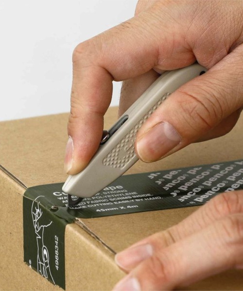 荷物の開封からアウトドアまで対応する万能ナイフ ボールチェーンが付いたポケットサイズのカッターナイフ。ボタンで押し出すタイプで、刃先は2段階の長さで調節可能。玄関先にぶら下げて、通販の段ボールや荷物の開封に。また、気軽に持ち出せるのでDIY、アウトドア、釣りにもおすすめです。使い捨てではなく別売のリフィルもご用意がございますので長くご愛用いただけます。 ハンドルサイズ:幅8.5 × 高さ2.0 × 奥行0.9 (cm) 刃の最大出幅:1 (cm) 備考:10枚入り専用別売りリフィルあり(品番 dr007) ■ブランド:penco/ペンコ 99年にスタートしたペンを中心としたブランド。普段使いのカジュアルな文房具や、機能的なグッズを提案しています。 懐かしいけど新しい、ワン&オンリーな魅力にぜひ触れてみてください。 【注意事項】 本製品は刃物です。人に向けたり、刃を出したまま携帯すると危険ですのでお取り扱いには十分にご注意ください。なおデザインの意匠としてポールチェーン付き仕様にしておりますが携帯時の安全性を保証する物ではありません。また、お子さまの手の届かないところに保管してください。