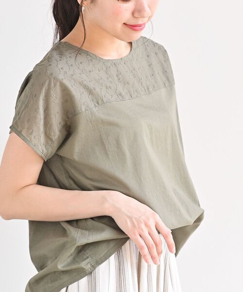 さりげない刺繍が大人かわいいコットンブラウスふわっとライトでさらっとした肌触りが夏にぴったりなコットンボイルのブラウス。粗目の生地がシアー感を演出してくれる爽やかな1枚です。薄手で軽い生地は暑い日もストレスフリー◎。胸元と背中に刺繍をあしらった大人ガーリーなデザインが魅力です。清楚で涼しげなシーズンライクなアイテム♪裏地なし伸縮性なし薄手首後ろボタンありインド生産(インド製品特有の色柄、風合いのため多少の色むら、織りキズ等は商品の特徴の一つですので、予めご了承ください)洗濯:洗濯機使用可(ネット使用)