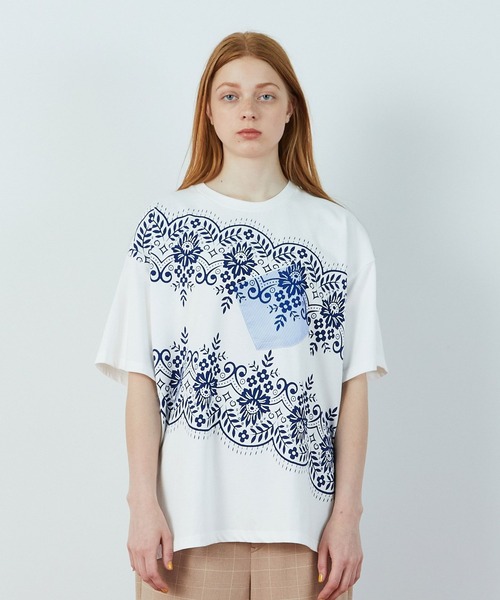 適度なハリコシとキレイな表面感が特徴の綿のカットソー生地を使ったゆったりシルエットが程よいヌケ感で可愛いTシャツは、フロントに入ったプリントが特徴的。 ストライプ柄のシャツ生地で作ったポケットを付け、その上から大胆にもプリントした柄は繊細な刺しゅうにも見えるレースのようなモチーフ。 プリントのモチーフには草花や民族的な刺しゅうをインスピレーションにしたデザインにさり気なくブランドのロゴが隠れている程よいヌケ感がポイントとなっています。 *こちらの商品はユニセックス商品です。 【ブランド情報】 FRAPBOIS/フラボア 2001年にブランドスタート。 「大人げない大人の服」をコンセプトに、大人が着るリラックスしたデイリーウェアを提案するコレクションブランド。 レディースとメンズのアイテムをご用意しています。 ---------------------------------------------------------------------- 【お気に入り登録】がおすすめです。 ■商品のお気に入り登録 再入荷、残り1点、セールなどの通知を受け取ることができます。 →商品ページ ♡ をクリック ■ショップのお気に入り登録 新商品や再入荷、セール、クーポン配布、ショップニュースなど、いち早くショップの情報を受け取ることができます。 →「♡お気に入りショップに追加」 をクリック ----------------------------------------------------------------------