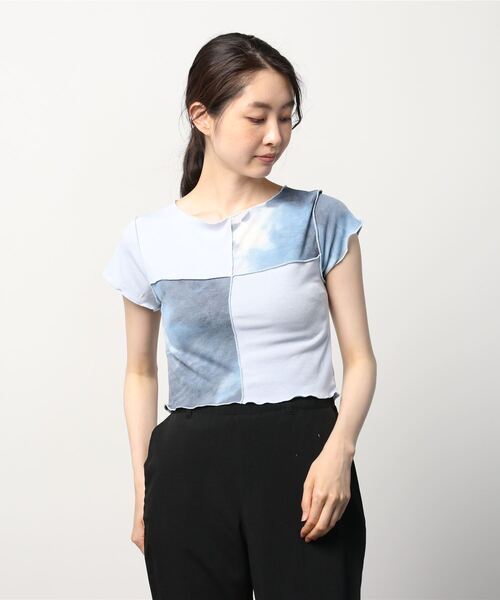 kr21ss-tp20-wht / kr21ss-tp20-bluタイダイ色の配色の入ったメロウトップス。着やせシルエットのトップスでパンツにもスカートにも相性のいいトップスです。