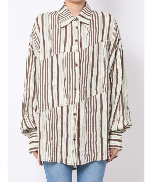 ■ストライプデザインが一枚で決まる■斜めに切り替えられたデザインが印象的な個性派トップス!コーディネートを華やかに仕上げてくれること間違いなしなアイテム。シンプルなボトムスに合わせてトップスを目立たせたスタイリングがおすすめ。ゆるく仕上げたいときは、ワイドパンツにアウトスタイルでモードながらもラフな組み合わせがマスト。【商品特徴】透け感:なし伸縮性:なし生地の厚さ:普通サイズ感:ゆったり 裏地:なし※画像の商品はサンプルです。実際の商品と色味、仕様、加工、サイズ、素材等が若干異なる場合がございます。【トクする便利機能】♡商品のお気に入り登録再入荷時、ラスト1点の時、セール開始時にお知らせします。♡ブランドのお気に入り登録新商品や再入荷、セール情報など、ブランドのお得な情報を受け取ることができます。是非ご活用ください!