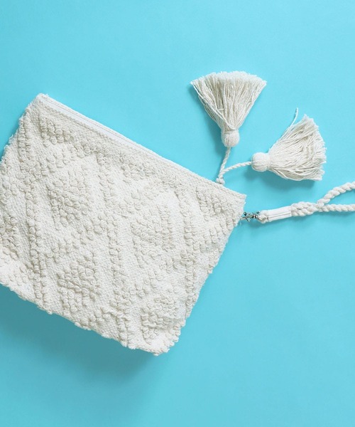 Jines ジャガードZIPクラッチBAG特徴的な柄と大ぶりなタッセルがかわいいクラッチバック ちょっとしたお出かけに持ちやすいサイズ感です。 バッグインバッグにもオススメのアイテムです◎