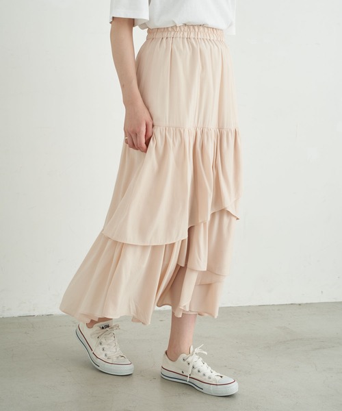 イレギュラーヘムのティアードフリルで、豊かな表情を演出するスカート。 歩くたびに優しく揺れるシルエットが、女性らしいフェミニンさを引き立たせてくれます。 ウエストゴム仕様で穿き心地もノンストレス◎ 落ち着いたカラーで着回し力も高く、カジュアルから綺麗めスタイルにと、幅広く活躍してくれます。 ● earth music&ecology ● (アース ミュージック&エコロジー) 流行とナチュラル感を取り入れ、幅広い層に向けて発信するブランド。 オシャレ着から通勤、カジュアルまで女性の様々なシーンで楽しんでいただけるナチュラルガーリッシュなアイテムを展開。 ▼ 商品のお気に入り登録がおすすめです ▼ 商品ページ内のハートマークをクリック。完売時の再入荷や、最後の1点の通知、コーディネート画像がアップされたとき、お得なお値下げの際の通知を受ける事ができます。 【お知らせ】ページでも通知が確認できます。