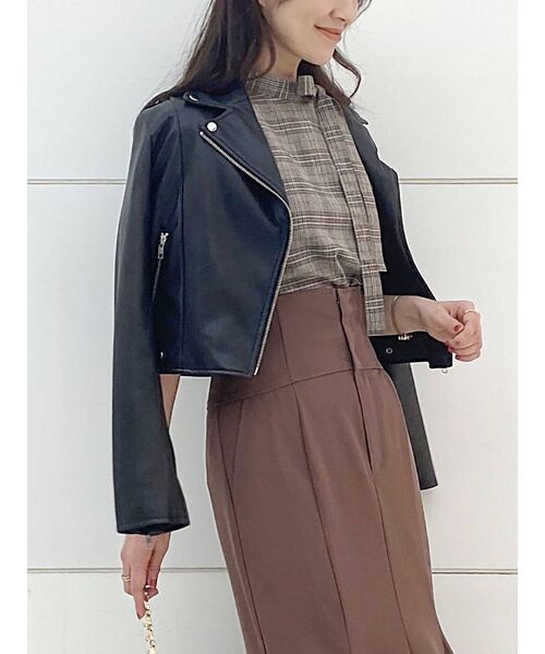 \コンパクトな丈感が合わせやすい一枚!/ トレンドに左右されず、季節の変わり目には欠かせない定番のライダース。 コンパクトな丈感はワンピースからパンツスタイルまでどんな服とも相性抜群です。 ▼スタイリング ワンピースやスカート合わせがおすすめです。 丈がコンパクトなので、スタイルアップ効果も期待できます◎ ---------------------------- 透け感:なし 裏地:あり ---------------------------- ▼おすすめスタイリングアイテム ・サテンドレープカッティングスカート ・フラワーエンブロイダリーフレアスカート ・レースビスチェ付フラワーティアードワンピース 【 ZOZOTOWNでお買い物を楽しむ便利機能 】 ♡商品のお気に入り登録 完売カラーの再入荷時、ラスト1点の時、セール開始時にお知らせします。 予約アイテムが入荷して通常販売になった時もお知らせしてくれます!その他お得な通知も盛りだくさんです。 ♡ブランドのお気に入り登録 新商品や再入荷、セール情報など、いち早くブランドのお得な情報を受け取ることができます。 ぜひご活用ください!