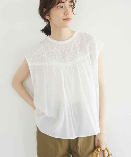 ナチュラルフェミニンなムードたっぷりのブラウス。 ヨークに入った繊細で可憐な刺繍が、ニュアンスのあるスタイリングを叶えます。 シンプルなディテールがよりデザインを引き立てる1枚。 ギャザーの入った優しいフォルムで着こなしやすく、カジュアルアイテムとも好相性です。 ■STAFF着用レビュー ・薄めの素材なのでブラックはあまり気にならないですが、他のカラーは透け感があるのでインナーのカラーは派手ではないものをおすすめします。 ・程良いゆとりのあるサイズ感とサラッとした素材感で着心地も◎ ●SUGAR SPOON● (シュガー スプーン) カジュアルをベースに、自由にオシャレを楽しみたい女性に向けた新しいリアルクローズを提案。 さりげなくトレンドを取り入れ、スタイリングしやすいデイリーウエア。毎日を一緒に楽しく過ごせる、そんな服を展開。 ▼ 商品のお気に入り登録がおすすめです ▼ 商品ページ内のハートマークをクリック。完売時の再入荷や、最後の1点の通知、コーディネート画像がアップされたとき、お得なお値下げの際の通知を受ける事ができます。 【お知らせ】ページでも通知が確認できます。