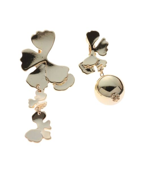 花びらをモチーフにしたアシメデザインのイヤリング。花びらとラウンドモチーフを組み合わせることにより、女性らしいアイテムに仕上がりました。花びらの形や向き、組み合わせにこだわったイヤリングです。