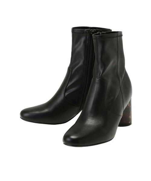 人気のストレッチショートブーツが今年も登場!より快適に履けるよう、毎年形の細かな改善を行っています。定番の形でヘビロテできるデザイン且つ、大理石調の特徴的なヒールが、いつものコーディネートをワンランクアップしてくれます。太めの円柱ヒールなので安定感も抜群です!柔らかいストレッチの効いたフェイクレザーが、程よいフィット感のある一足です◎(ヒール約6.5cm)