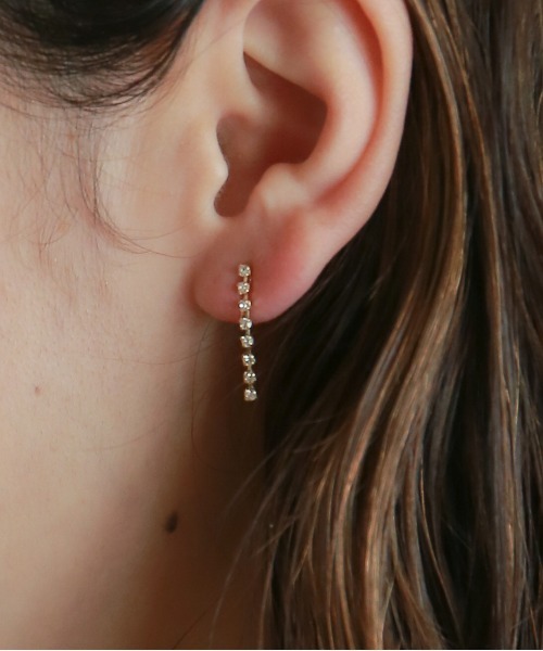 【rapiecage ラピエサージュ】 ■ラインストーンスイングイヤリング きらきら輝くライン状に並んだガラスストーン。動く度揺れるモチーフで華やかながらも、細く短めのチェーンをセレクトすることで程よく主張を抑えたデザイン。さりげなく上品かつ女性らしいアイテムです。 リネンやカットソーなどカジュアルな装いのドレスアップとして重宝。オケージョンシーンにも活躍します。 ※商品はrapiecageオリジナルBOXに入れてのお届けになります。 ※イヤリングパーツは、ピアス見えする耳たぶにはめ込むタイプ。 痛みもなく安心です。ゆるい場合は、はめた後に優しく押さえて調整してください。
