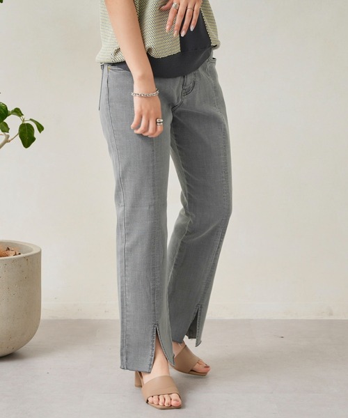 【S/Mサイズ展開あり】ストレッチが効いたストレスフリーな履き心地!■point・ヘルシーな肌見せで抜け感を出せる裾スリットデザイン。・裾のダメージ加工がコーディネートを軽い雰囲気にしてくれます。・ストレッチが効いた極伸びデニム!ストレスフリーに履いていただけます。・どんなテイストにも合わせやすいベーシックなアイテム。・ストレートスリムなシルエットなので、キレイ目コーデにピッタリ!■シリーズ品番PGC1021302A0004 ロープベルト付配色ステッチタックパンツPGC1021302A0006 リネンタッチテーパードパンツ■coordinate(PGC1021409A0001 キーネックギャザースモックワンピース)と合わせたレイヤードコーデや、(PGC1021304A0001 ボタニカル刺繍ドルマンプルオーバー)と合わせたラフなカジュアルコーデがオススメです。ベーシックなシルエットにスリットデザインと少しアクセントを加えたデニムなので、何にでも合わせていただきやすく万能なアイテムです。--------------------------------------------------透け感:なし裏地:なし伸縮性:あり生地の厚さ:普通ポケット:あり季節:春.夏.秋.冬洗濯方法:手洗い可--------------------------------------------------※商品画像は着用イメージです。光や角度により、実物と色味が異なる場合がございます。また表示のサイズ感も実物とは若干異なる場合もございますので、ご了承ください。※着用、お取り扱いの際は、商品についている品質表示とアテンションタグを必ずご確認ください。--------------------------------------------------♡をクリックでお得な情報をお知らせいたします。<商品お気に入り登録>お気に入りアイテムのお値下げ・再入荷・在庫ラスト1点など通知を受けることができます。<ブランドお気に入り登録>Chez toiの新商品・再入荷・SALE・クーポン配布などお得な情報を受けることができます。--------------------------------------------------リラックススタイル/ストレスフリー/デニム/ベーシック/デイリー/体型カバー/大人カジュアル/ママコーデ/お出かけスタイル/細見え/抜け感/キレイめ/フルレングス/低身長/華奢見え/シンプル/サイズ展開/スリット/ダメージ加工/ダメージジーンズ/着回し/抜け感/極伸び/ストレッチ/ママファッション/デートコーデ/公園コーデ/フレンチカジュアル/スリットパンツ/オールシーズン