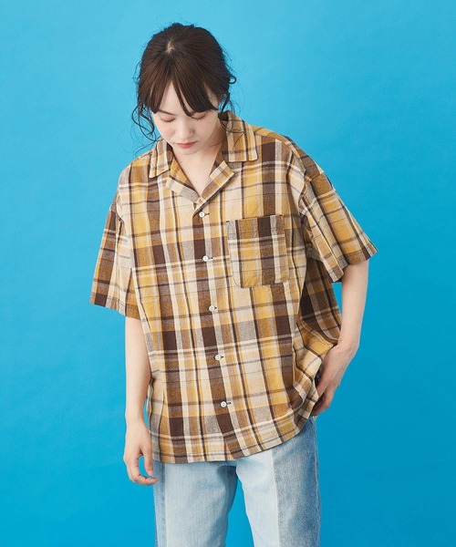 ■夏コーデを彩るチェック柄開襟シャツ夏のシーズンムードを高めるカラーリングがついつい目を惹くチェック柄シャツ。襟元が開くことでデコルテラインをキレイにみせてくれるオープンカラーでお作りしました。ふんわり淡い色合いで、大人ナチュラルさんも着やすいチェック柄をチョイス。アロハシャツのようにさらりとラフに着こなして夏のリラックスコーデをお楽しみください。■着回し抜群!ビッグシルエット体のラインを泳ぐようなたっぷりとしたオーバーサイズは、夏のラフなスタイルにぴったり。ひじにかかる長めの半袖と、体のラインをはっきりさせないメンズから借りたようなサイジングが、ジェンダーレスでこなれたカジュアルに演出することができますね。フロントボタンを閉めてメインはもちろん、Tシャツの上からサッと羽織るレイヤードスタイルなど幅広く着回しができます。■くしゅっとした表情が可愛いコットンレーヨンクシュっとしたシボ感がナチュラルな印象の綿レーヨン。肌に触れる面積も少なくなるので、汗ばむ夏でもサラリと快適に過ごせるのも嬉しいポイントです。涼しい風が通り抜けるような軽やかな質感と、柔らかみが程よくブレンドされ絶妙なバランスに仕上げました。※モニター・環境等により実際の商品と多少色味が異なって表示される場合がございます。予めご了承をお願い致します。【アイテムカテゴリ】トップス シャツ ブラウス ビッグシャツ オープンカラーシャツ 開襟シャツ チェックシャツ チェック柄シャツ【デザイン】ピンクチェック ネイビーチェック イエローチェック カラフル 配色 クレイジーパターン マルチ 夏カラー 夏色 アースカラー パステルカラー 定番カラー レイヤード 重ね着 古着風 ユーズド風 総柄 チェック柄【シルエット】ドロップショルダー ビッグシルエット オーバーサイズ 大きいサイズ ゆったり 大きめ 楽ちん 動きやすい ジャストサイズ Mサイズ フリーサイズ ポケット付き ポケット 胸ポケット ショート丈 ミディアム丈 ミドル丈 半袖 半そで ショートスリーブ ハーフスリーブ 襟付き 衿付き オープンカラー ボタン開き 前開き 羽織り ボタンフライ フロントボタン 前ボタン【生地・素材】コットンレーヨン 綿レーヨン 布帛【ファッションテイスト】大人カジュアル アメカジ アメリカンカジュアル ペアルック おそろい アウトドアファッション 大人ナチュラル ストリートスタイル ストリートファッション ストリート系 スケータースタイル 韓国コーデ 韓流 フェス ライブ ガーリィ ガーリー フェミニン ワンマイルウェア メンズライク【シーズン】春 春夏 夏 秋