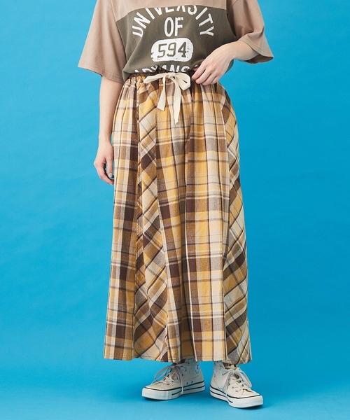 ■夏コーデを彩るチェック柄スカート 夏のシーズンムードを高めるカラーリングがついつい目を惹くチェック柄スカート。 穿くだけで手軽にレトロ&トラッドな雰囲気がプラスされ、スタイリングを彩る主役ボトムスです。 いつものコーディネートするだけで、シンプルなスタイリングが一気に華やかに。 ウエストはギャザーをたっぷり寄せてリボンを通しているので、トップスインのスタイルもおしゃれに楽しめますね。 歩くたびに動きが出るボリューム感で、フレアに広がる裾が揺れるたびにいろんな表情を見せてくれます。 ■総ゴムのイージーデザイン ウエストは総ゴムのイージーデザインにすることで、普段使いにぴったりのラクチンな着心地に。 外紐を結べばお好みのフィット感で合わせることができるのもポイントです。 華奢な足首をみせるロング丈が、女性らしさと体型カバーを同時に叶えてくれます。 ■くしゅっとした表情が可愛いコットンレーヨン クシュっとしたシボ感がナチュラルな印象の綿レーヨン。 肌に触れる面積も少なくなるので、汗ばむ夏でもサラリと快適に過ごせるのも嬉しいポイントです。 涼しい風が通り抜けるような軽やかな質感と、柔らかみが程よくブレンドされ絶妙なバランスに仕上げました。 ※モニター・環境等により実際の商品と多少色味が異なって表示される場合がございます。予めご了承をお願い致します。 【アイテムカテゴリ】 ボトムス スカート フレアスカート ロングスカート ギャザースカート マキシスカート チェックスカート チェック柄スカート Aラインスカート 【デザイン】 ピンクチェック ネイビーチェック イエローチェック カラフル 配色 クレイジーパターン マルチ 夏カラー 夏色 アースカラー パステルカラー 定番カラー レイヤード 重ね着 古着風 ユーズド風 総柄 チェック柄 【シルエット】 ビッグシルエット オーバーサイズ 大きいサイズ ゆったり 大きめ 楽ちん 動きやすい ジャストサイズ Mサイズ フリーサイズ ポケット付き ポケット サイドポケット ウエストゴム 総ゴム ひざ下丈 ロング丈 aライン フレア 【生地・素材】 コットンレーヨン 綿レーヨン 布帛 【ファッションテイスト】 大人カジュアル アメカジ アメリカンカジュアル ペアルック おそろい アウトドアファッション 大人ナチュラル ストリートスタイル ストリートファッション ストリート系 スケータースタイル 韓国コーデ 韓流 フェス ライブ ガーリィ ガーリー フェミニン ワンマイルウェア ルームウェア 【シーズン】 春 春夏 夏 秋