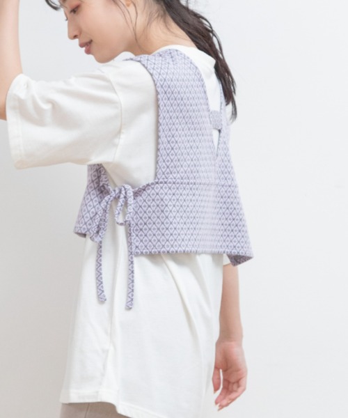お手持ちのアイテムの相性抜群!マルチWAYで楽しめるジャガードビスチェ☆※シンプルTシャツとセットです※<MATERIAL>今年トレンドの膨れジャガードに格子柄がとてもかわいい表面変化のある素材感。立体的な表面に編み込んであるラメが、さりげなくキラキラする生地です。Tシャツは柔らかく肌触りのいい生地感になっています。<DESIGN>ビスチェの深いVネックで上半身がすっきり☆ざっくりあきの衿元ですが、後ろに背当てがあるのでなで肩の方でも落ちずに綺麗に着られます!セットアイテムですが別々に着回すことも可能◎夏にあると便利なシンプルカットソーはボトムを選ばず、レイヤードしやすいデザインになっています。おすすめのビスチェ単体の着回しは、お手持ちのTシャツやシャツワンピースとのレイヤードに使用できます!トレンド感のあるコーディネートに仕上げてくれます!サイドのリボンで身頃のサイズ調整はもちろん、様々な結び方を楽しんでいただけます。☆品番712543M・712526Mの同柄シリーズとの2ピース、3ピースコーデも可愛いのでお試しください!<COLOR>アイボリー:グレーにもオフホワイトにも見える曖昧カラー 夏ジャガードらしい涼し気な雰囲気ですラベンダー:クリーミーな乙女ラベンダー カラーは優しくてもスタイリッシュなデザインが大人っぽい♪ブラック:ブラックですがジャガードのいい感じの上品柄が差し色になり重くならない!引き締めにもぴったりな絶妙ブラックです。☆品番712543M・712526Mの同柄シリーズとの2ピース、3ピースコーデも可愛いのでお試しください!<COLOR>アイボリー:グレーにもオフホワイトにも見える曖昧カラー 夏ジャガードらしい涼し気な雰囲気ですラベンダー:クリーミーな乙女ラベンダー カラーは優しくてもスタイリッシュなデザインが大人っぽい♪ブラック:ブラックですがジャガードのいい感じの上品柄が差し色になり重くならない!引き締めにもぴったりな絶妙ブラックです。関連ワード大学生:通学コーデ:春:淡色コーデ:ベージュコーデ:お揃い:双子コーデ:シミラールックコンサート:参戦服:プチプラ:推しカラー:キャラコーデ:ディズニーコーデスタイルアップ:体型カバー:ブラウス:タンクトップ:インナー:レイヤード差し色:くすみカラー<CARE>※詳しくは製品に付属している洗濯表示をご参照ください。※撮影環境により、多少実際のカラーと異なる場合がございます。 また、携帯やスマートフォン、パソコンなどの画面上と実物では多少色が異なって見える場合がございます。