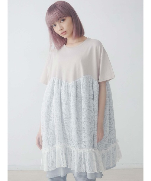 カジュアルなカットソーとつややかなサテン素材の組み合わせが印象的なワンピース。カットソー素材でこの時期にぴったりのワンピースは、1枚で着るのはもちろん、パンツと合わせて casual downするのもおすすめです。
