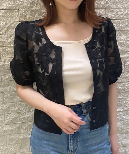 【デザイン】繊細な刺繍フラワーが施されたこだわりが詰まった1枚で、透け感があるので女性らしくお召しが頂けます。前後2wayで着て頂ける仕様でボタンを外すと涼し気な羽織りとしても使えるので、これからの季節から長いシーズン着て頂けます。今年気になる短丈はヘルシーにバランス良く着れて、ふんわりとしたボリューム袖がポイントでさらっと1枚で可愛く見せてくれます。【コーディネート】生地感がしっかりとしていて1枚で主役になってくれるブラウスなので、シンプルなデニムやスラックスパンツなどとの相性が良いです。