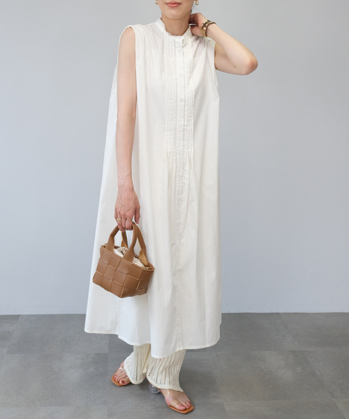 きちんと感のあるバンドカラーデザイン。フロントタックで立体的なデザインがアクセントの綿100%のシャツワンピース。裾にかけてふわっと広がるシルエットがフェミニンで涼しげな印象。パンツをレイヤードしてチラ見せするのもおすすめ。■コーディネートアイテムパンツ…bf76x04605■商品仕様コットン生地裏地…なし伸縮性…なし透け…淡色のみありポケット…なし付属品…なし着脱…前開きボタン※ボタンの仕様は変更される場合がございます。※繊細な生地ですのでお洗濯などのお取り扱いには十分ご注意ください。詳しくはタグをご覧ください。 ※着用の際、摩擦や発汗により衣類やバッグ等に色移りの恐れ(特に淡色系のもの)がありますので、十分ご注意下さい。※淡色は透けますのでインナーの着用を推奨します。【ご購入前に必ずご一読下さい】※モニタ環境によって、商品の色合いが多少異なる場合がございます。※色落ちの恐れがありますので、他のものと分けてお洗濯して下さい。※商品をお安く提供させて頂く為、検品後のアイロン掛けは省略させて頂いています。発送時も簡易梱包の為、お受け取り時にたたみ皺があると思いますがご了承下さい。