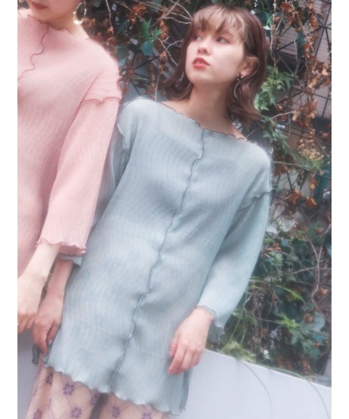 軽やかな透け感の エアリーtopsは、 まだまだ暑い時期にもぴったりな item。 ゆったりとした サイズ感と、 ハーフスリーブの 袖丈で 柔らかく、華奢な印象に。 色遊びも楽しくなるような、 バイカラーのうねうねメロウ刺繍もアクセント。 【コーディネートのポイント】 メロウトップスは今回ハーフスリーブになり、長いシーズンで着れる長さに。 暑い時期にはキャミワンピースやジャンスカと合わせて、寒い時期にはトレーナーや フーディーの下に忍ばせて首元からちらっとメロウを覗かせてあげると◎ サイドにざっくりとスリットが入っているのでアウトで着たときも、 どよんと重たく見えず着やすいですよ♡ 【商品のお気に入り登録】 ♡をクリック! 完売カラーの再入荷や、ラスト1点の通知、 セールの際の通知も受け取ることができます。 【ブランドのお気に入り登録】 新商品や再入荷など、 merryの情報をいち早くお知らせします! ぜひご登録ください♡