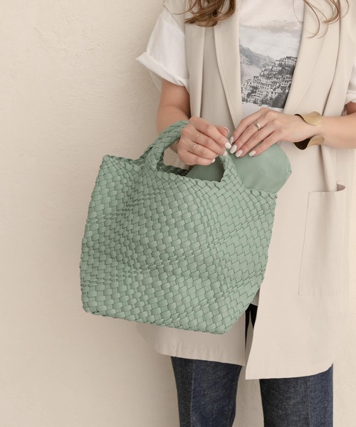 細かく編み込まれたデザインが今年らしいバッグ。デイリーに使いやすい大きさで、持ち手が太く持ち運びしやすいのも魅力的!中には嬉しい、取り外し可能なポーチ付きです。総重量 : 約470g[ポーチ]one : 高さ11cm / 幅18m / マチ5cm※商品画像は、光の当たり具合やパソコンなどの閲覧環境により、実際の色味と異なって見える場合がございます。予めご了承ください。※商品の色味の目安は、商品単体の画像をご参照ください。