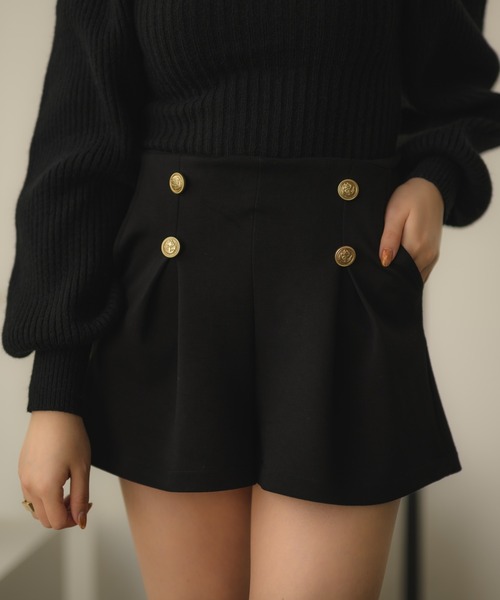 スタイリングの幅が広がるショートパンツの登場!![デザイン]おしゃれなボタンが印象的なショートパンツ。タックを入れる事で裾にかけてフワッと広がるデザインで足もきれいに見せてくれる一枚です。シーズンレスで長く使えるアイテムで大活躍間違えなし!ウエストにゴムを使用しない事でスッキリと見せてくれます。[素材]伸縮性のある生地を使用し着心地も抜群です。柔らかい生地を使用する事で肌触りも良く着心地も抜群です![スタイリングポイント]シャツやブラウスの裾をショートパンツにインしたスタイリングがオススメです。Tシャツに合わせればカジュアルなスタイリングもお楽しみ頂けます。----------------------------------------------------------▶商品のお気に入り登録完売カラーの再入荷通知やラスト1点の通知などお得なプライスダウンの情報も受け取ることができます。ぜひご登録ください◎▶ブランドのお気に入り登録新商品や再入荷など、ブランドの最新情報をいち早くお知らせします!ぜひご登録ください♪----------------------------------------------------------※撮影環境の光や角度により、実物と色味が異なる場合がございます。 また表示のサイズ感も実物とは若干異なる場合もございますので、予めご了承ください。 ※着用、お取り扱いの際は、商品に付いている品質表示を必ずご確認ください。