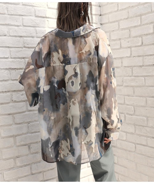 ニュアンスデザインがコーデのアクセントになるオーバーシャツ。 程よいシアー感が魅力の1枚です。 【STYLING】 キャミソールやタンクトップに重ねてシンプルに着るのはもちろん、ワンピースやサロペットにさらっと羽織れる、着回し力たっぷりのうれしいアイテムです。 【DETAIL】 程よく透け感のある生地ですので、冷房対策にもピッタリな一枚。 オーバーサイズでトレンド感のあるゆるっとした着こなしで体型カバーもバッチリ。 ※ストレッチなし※裏地なし※透ける素材になっております。 ※生地のデザイン上、実際の商品と画像とで柄の配置が異なる場合がございます。予めご了承ください。 ※商品のお取扱いに関しましては、商品に付属のアテンションカード、洗濯ネームをご覧ください。 ※モデル着用画像は光の当たり具合で色味が違って見える場合がございます。 実物の商品の色味はマネキン着用画像をご参照ください。 【お買いものをお楽しみいただく為に!】 ▼商品のお気に入り登録 完売カラーの再入荷通知や、ラスト1点の通知、セールの通知も受け取ることができます。 ▼ブランドのお気に入り登録 新商品や再入荷など、いち早くブランドのお得な情報を受け取ることができます。
