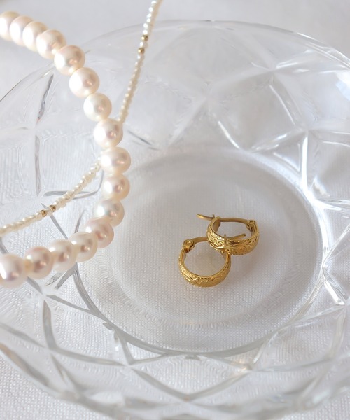 ステンレスのスモールピアス。小さいながら模様入りのピアスは存在感があり、マスクをしていても邪魔にならない強い味方。キラリと輝く上品なピアスはマストハブアイテム。サビや変色に強くお手入れ入らずなのもステンレスならでは。金属部分には、比較的肌に優しいステンレスを使用しています。 【素材】 ステンレス 【Size】 One Size 約 1.5cm※ ステンレスは真鍮や銅・金メッキに比べ 比較的アレルギーが 出にくい素材とされています。 金属アレルギーには個人差がありますので、痒みが出た場合は すぐに使用を中止し皮膚科などでの診察をお勧めいたします。