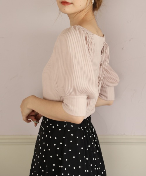 ~NICECLAUP 2021 summer Collection~ ■Backレースアップデザイントップスが登場!! 大人気のデザインがテレコ素材で夏仕様に! すっきり見えるトップスはさまざまなシーンで活躍すること間違いなし◎ 二の腕カバーしてくれる丈なので腕の華奢魅せも叶います。 後ろは同系色のレースアップデザインで、女性らしさもプラス。 【スタイリング】 タイトスカートやフレアスカートでキレイめコーディネートの完成。 デニム以外にもカラースラックス等のパンツ合わせもおすすめです! ミニスカートやショートパンツ合わせは甘め好きな方におすすめ。 また、サロペットやジャンパースカートのレイヤードとしても使いやすいアイテムです。 ------------- 裏地:なし 伸縮性:あり 生地の厚さ:ふつう 生地の重さ:軽い ------------- ※サンプルでの撮影のため、実際のものと仕様や色が異なる場合があります。 ※室内、室外での撮影のため実際より明るく映っていたり、暗く映っていたりする場合がございます。 ※品質表示を必ずご確認下さい。 【商品のお気に入り登録】 完売カラーの再入荷や、ラスト1点のお知らせ、セールの通知を受け取ることができます。 【ブランドのお気に入り登録】 新作入荷や再入荷情報など、ブランドの情報をいち早くお届けします。 ぜひご登録ください♪