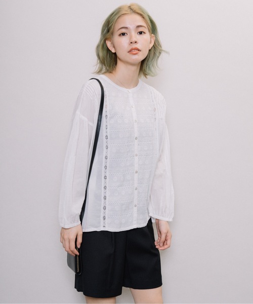 【NIMES & LA MARINE FRANCAISE】 サラッとしたゆれる着心地、雰囲気ある女っぽさを演出してくれるレースブラウス 清涼感あるサラッとしさ涼しげな綿レーヨンのフェミニンなレースブラウス。女性らしい透明感を引き出してくれます。上品なレース挟み込みのデザインにゆったりとしたサイズ感、どなたでも着こなしやすいベーシックカラーでご用意致しました。軽い羽織りとしても使用でき、春から秋までロングシーズン着用可能です。 ロングスカートやワイドパンツはもちろん、ショートパンツやサロペットやジャケットなどのインナーにもぴったり。 オンオフ問わず幅広いシーンに使える一着です。 テレワークコーデからオフィスコーデ・通勤コーデからお出掛けコーデ・リゾートコーデにもおすすめ ---------------- 透け感:少し 生地の厚さ:薄い 裏地:なし 伸縮性:なし ---------------- 【お買い物をよりお楽しみいただく為に♪】 ▼商品のお気に入り登録をおすすめします ♡をクリック! 完売カラーの再入荷や、ラスト1点の通知、 セールの際の通知を受ける事ができます。 ブランドのお気に入り登録も ご一緒にお願い致します。 【NIMES & LA MARINE FRANCAISE】 いつもの毎日を自分らしく丁寧に暮らす大人の女性に向けて、リラックス感のある心くすぐるディテールの洋服を提案します。海と空と太陽と共に 海と空と太陽の輝く中、風に乗って動き出す。 マリンフランセーズはアンカーを降ろし港で停泊する時を超えて、新たな時代に向かって船出する。 風を受け、大きく帆を広げて マリンフランセーズは「やっぱりフレンチスタイルが好き」という、お客様の思いに応えお洋服を作り続けます。 【INFORMATION 】▼お気に入り登録▼『♡』マークを押してお気に入り登録をすると、割引クーポンの発行/セール開催の通知/タイムセール通知/人気商品の再入荷通知など、取扱いブランドのお得な情報を受け取ることができます。 気になった商品はどんどん『♡』マークを押して、登録してくださいね♪