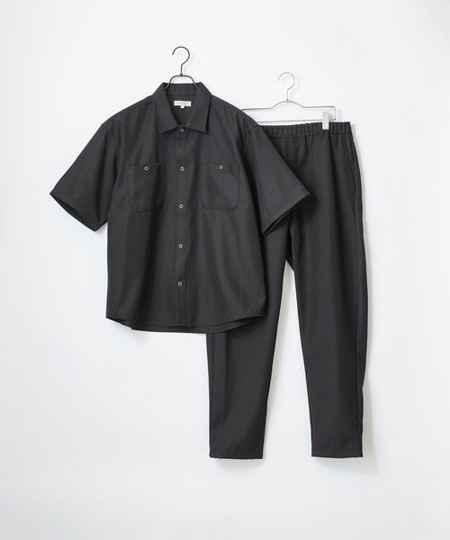Craft Nicholson(クラフトニコルソン)セレクション「【 セットアップ 】 スタプレ オーバーサイズ ダブルポケット 半袖ワークシャツ&ワイドテーパードイージーパンツ 」 『 ワンポイントアクセントに素材感で魅せるトレンドライクなセットアップスタイル 』 ■ デザイン 【 トップス 】 トレンドライクなドロップショルダーのオーバーサイズシルエット。 ベーシックなレギュラーカラーに両胸にポケットを配置させたミニマルデザイン。 フロントボタンと両胸ポケットにリングドットボタンを使用することでシンプルな中にワークテイストを加えました。 【 ボトムス 】 ワイドシルエットながらウエストから裾に向かって緩やかにテーパードしていくことで、 だらしなくならないサイジングで絶妙なシルエットを演出。 ウエストはゴムシャーリング仕様でストレスフリーな履き心地を実現しました。 ■ 素材 程よい光沢感でキレイなドレープが生まれるポリエステル100%の中肉『スタプレ』ツイル生地を使用。 スタプレの名前の由来でもあるアイロンをかけなくてもセンタープレスがキープされる程、シワができにくく頑丈さが特徴。 心地の良さを実現し通気性のも優れ、イージーケアでオールシーズンヘビーユーズ出来るのが嬉しいポイント。 ■ コーディネート 計算されたサイジングのためインナーを挟むだけで絶妙なドレンドライクな着こなしを実現してくれます。 セットアップでの着用はもちろん、トップスにスキニーやチノでYラインシルエットのモードライクテイストや 暑くなる時期にはカットソーとボトムスと合わせるだけでキレイなシルエットが完成する、 デイリーコーデの幅を広げてくれる1着あると便利な今期マストバイアイテムです。 ≪ お買い物をお楽しみいただくために ≫ ▼ 商品のお気に入り登録 完売カラーの再入荷通知やラスト1点の通知、セールの通知も受け取ることができます。 ▼ ブランドのお気に入り登録 新商品や再入荷等、いち早くブランドのお得な情報を受け取ることができます。 【 Craft Nicholson / クラフトニコルソン 】 ユーザー視点で、世の中の変わるニーズを捉え、旬のライフスタイルを追及します。 感度のある新しさや使いやすさを求め、そこにベーシックさも兼ね備えたファッションを届けるショップです。 ※ご覧のモニター環境や撮影環境や光の当たり具合で実際の商品と色味が異なって見える場合があります。