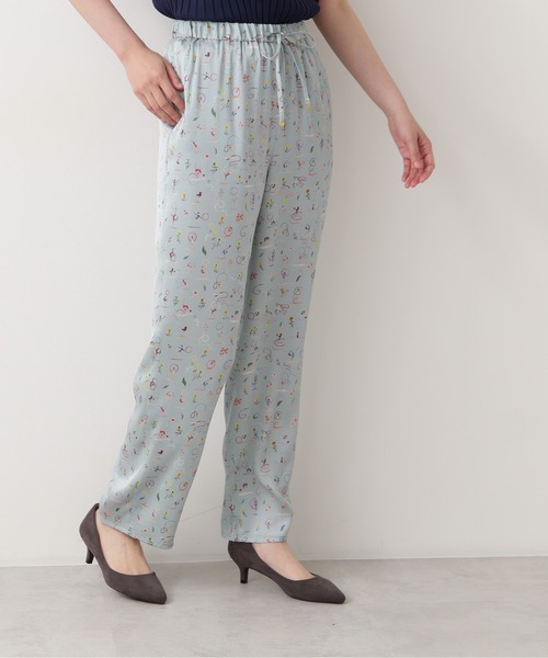 英国リバティー社の「Ribbon Bloom」柄を使用。オリンピックを意識した可愛らしい新体操の絵柄が印象的なイージーパンツ。ベースにサテン素材を使用しているから、キャッチーな柄感も大人っぽく着られるのがポイントです。ウエストは総ゴム仕様。※モデルの着用画像の場合、光の当たり具合により、実際の色味と異なって見えることがございます。色味は、商品単体の画像をご参照ください。