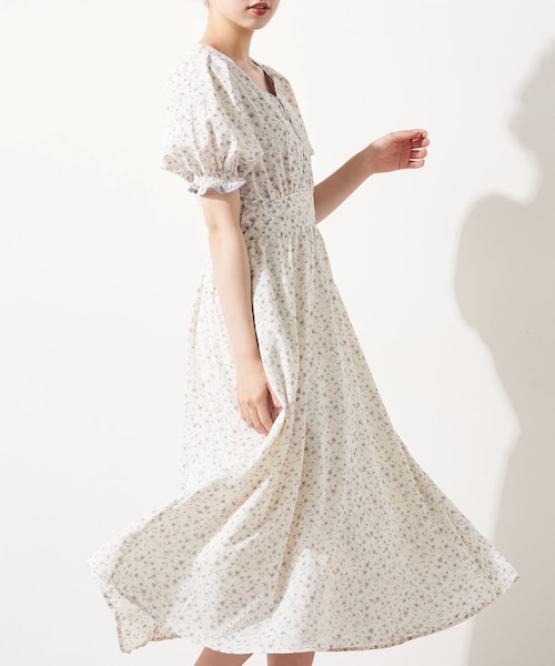 今期トレンドのパイピング使用が目を惹くワンピースがVネックで登場!オトナ可愛く着れちゃうアソート花柄ワンピ。 ■デザイン・シルエット ・配色のパイピングで仕上げたVネックカラーが目を惹く1枚着ワンピ-ス。・ウエストがゴムでシルエットをきれいに見せてくれるのがポイント。・長く着回しできるように5分袖でお作りしました。・着丈もいつもより長めになっているので大人かわいいく着こなせます。・バックウエストにシャーリングが施されており、後ろからのシルエットも綺麗に見えます。・ふわりと広がるAラインが綺麗なシルエットになっております。・袖のボリューム感がレトロな印象にも。■素材 ・程よく肌離れして夏でも心地よく着ていただけます。 ■カラー ・使いやすいオフベースの小花柄3色と目を惹くサックスベースの4色展開。 ■スタイリング ・1枚で主役になれる今期トレンドライクなスタイリングが完成します。・カーディガンやアウターを合わせて長いシーズン着ていただけます。 ・ガ―リーにサンダルや、カジュアルにスニーカー合わせも◎ ・夏はカンカン帽やクリアバッグなど、夏小物で清涼感をプラスしてもガ―リーな仕上がりに・夏らしく雑材バッグや素足にサンダルで軽やかに○-----------------------------裏地 :あり光沢感:なし 透け感:(オフベースややあり) 伸縮性:なし 生地の厚さ:やや薄手 -----------------------------model:165cm 着用サイズ:FREE ※裏地はついておりますがオフホワイトは下に濃い色など着用しますと透け感がでてしまいますのでご理解のほどお願いいたします。☆お気に入り登録のおすすめ【気になるアイテムを登録】ハートをクリックしてお気に入りに登録すると完売カラーの再入荷やラスト1点の通知、セールの通知を受けとることができます。【ブランドを登録】♡お気に入りブランドに追加をプッシュして頂くと新作入荷や再入荷、セール通知など、いち早くブランドの情報を受けとることができます。是非ご利用下さい♪ ※着用、お取り扱いの際は、商品についている品質表示とアテンションタグを必ずご確認下さい。※ご覧のモニター環境や撮影環境により実際の商品と多少色味が異なって見える場合がございます。ご理解の程よろしくお願いいたします。