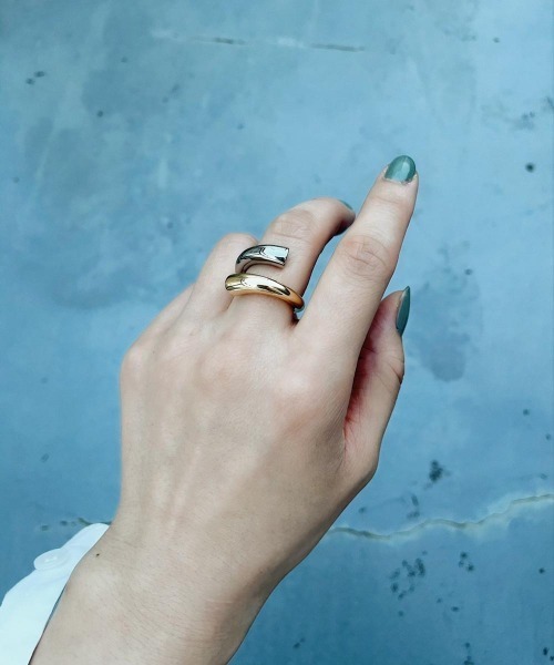 ゴールド×シルバーの配色使いとひねりデザインが、モードな雰囲気を漂わせるリング。シンプルながらも目を引く個性派アイテムは、指先を印象的に演出してくれます。オンオフのシーンを問わずに愛用することができ、幅広いスタイリングにも活躍してくれるアイテムです。