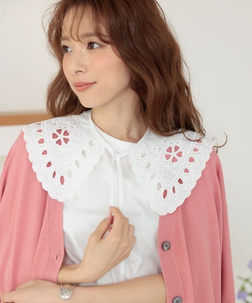 デザインつけ襟 今シーズントレンドのレース付け襟。 ビッグカラーが今年らしく、カットソーやスウェット、 ワンピースと重ねて旬コーデにランクアップ。 柄の違うレースで2タイプご用意致しました。 TYPE Aはぐるっと1周刺繍が施されており、 顔周りを華やかに演出してくれます。 TYPE Bはフラワーモチーフの 総レースになっており、上品な雰囲気に。 前後どちらを前にしても着用が出来、 ニットなどクルーネックにプラスするだけで トレンド感溢れるスタイルに◎ ~*~*~*~*~*~*~*~*~*~*~*~*~*~* ▼ 商品のお気に入り登録 ▼ 完売カラーの再入荷通知や、ラスト1点の通知、 セールの通知も受け取ることができます。 ぜひご登録ください♪ ▼ ブランドのお気に入り登録 ▼ 新商品や再入荷など、 ブランドのお得な情報をいち早くお知らせ! ぜひご登録ください♪