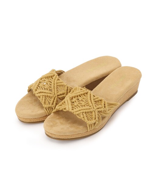 【デザイン】 アッパー部分をマクラメメッシュ編みで仕上げた目にも涼し気なサンダル。 高すぎず安定感のあるウエッジソールに加え、ふわふわのインソールで履き心地らくちんです。 ミュールタイプなので着脱もスムーズです。 店舗へのお問い合わせ商品番号:C70-12109 ●製品寸法: 25(22.5cm):対応サイズ22.5cm ヒール高3.5cm 幅7.8cm プラットフォーム2cm 35(23.5cm):対応サイズ23.5cm ヒール高3.5cm 幅8cm プラットフォーム2cm 45(24.5cm):対応サイズ24.5cm ヒール高3.5cm 幅8.2cm プラットフォーム2cm 備考:重量:45(24.5cm)片足約195g