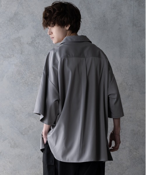 【 Button Stud Open Collar Shirt - ギボシオープンカラーシャツ 】 BAG等のファッション小物に使用するギボシ釦を採用したオープンカラーシャツ [素材] ポリエステル98%、ポリウレタン2%のナチュラルストレッチ素材。 表面に微光沢があり、高級感を感じる高密度素材となっております。 しなやかなドレープ具合が裾や袖先に向かって感じられ、 かつ適度な張り感のある生地だからこそ、キレイめなデザインとの相性は抜群です。 PU(ポリウレタン)が混紡することで、適度な伸縮性もあり 肩周りの可動がしやすく、重さも感じられないことで ノンストレスでTシャツやタンクトップ等に羽織ることが可能です。 [デザイン] リラックスシルエットのオープンカラーシャツ(開襟シャツ) 微光沢が高級感を与える生地を採用し、 キレイめな印象のある半袖シャツに仕上がりました。 商品名にも記載の通り、一般的なボタンではなく バッグ等のファッション小物に使用する『ギボシ釦(ボタン)』を採用。 凸部分を菊穴のホールに差し込む形状です。 着脱がし易く、シンプルな大人らしいシャツにアクセントとなるよう デザイン性に優れたアイテムとなっております。 袖口幅は広くとり、肌への密着度が少ないことで風通しよく涼しく着用頂けます。 背面はボックスタックが入り、ドレッシーな雰囲気を感じながらも 全体的なシルエットでタウンユースに活躍するアイテムとして、 夏場のコーディネートを楽しむことができます。 両サイドの裾は深めなスリットが入ることで インナーアイテムとの組み合わせで活躍します。 ※屋外での撮影画像や光の当たり具合で色味が異なって見える場合がございます。 商品の色味はスタジオでの詳細画像をご参照下さい。 [ KUUUPY ] シンプルながらもどこか可愛さが垣間見えるデザインをテーマにトレンドは勿論のこと、 着回しに特化したアイテムを素材やディテールに拘りベストプライスで提案。 ▼商品のお気に入り登録 完売カラーの再入荷通知や、ラスト1点、セールの通知をお知らせ致します。 ▼ブランドのお気に入り登録 新商品や再入荷など、いち早くブランドの情報を受け取ることができます。 是非ご利用頂き、お買い物をお楽しみ下さい。