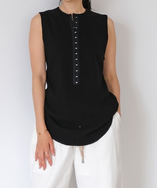 柔らかい風合いのサーマル生地を使用したタンクトップ。 細身のシルエットがすっきりと見せてくれ、船底仕様にすることでヒップ周りもカバー。 広めにアームホールを取り、腕を細く見せてくれるのも嬉しいポイントです。 フロントのスナップで胸元のあき具合は調整でき、少し外して着崩せば、抜け感もプラス。 ボトムスイン・アウトどちらのスタイルにも相性がよく、夏に活躍してくれる大人のカジュアルアイテムです。 ▼お取り扱い上の注意 ※お手入れの際は商品の縫込みネーム・アテンションを必ずご確認ください。 家庭洗濯〇(40℃限度。手洗いのみ) 漂白× タンブル乾燥× 日陰での平干し アイロン〇(低温110℃まで。スチームアイロン×) ドライクリーニング〇(弱い処理。石油系溶剤) ウェットクリーニング〇(非常に弱い処理) ・色物と白物一緒に洗濯しないで下さい。 ・洗濯時、ネットを使用して下さい。 ・形をととのえてから干して下さい。