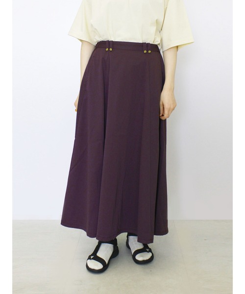ふわりと広がるフレアーフォルムがフェミニンなスカート。 カジュアル感をほどよくプラスするツイル素材で仕立てました。 ウエストデザインがさりげないアクセント。 すっきり見えと楽な穿き心地を兼ね備えた、バックゴム仕様のアイテムです。