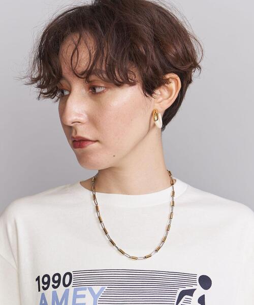 パイプパーツとチェーンを組み合わせた、ショートネックレス。光沢感の美しい2色のメタリックカラーのコンビが華やかなデザイン。コーディネートに印象的なアクセントをプラスしてくれるアイテムは、デイリーにはもちろん、ドレスアップスタイルにもおすすめです。店舗へお問い合わせの際は、全国のBEAUTY & YOUTH各店舗まで下記の品名/品番をお申し付け下さい。品名:BLN BY CMB PIPECHN S/NL 品番:1833-699-9826