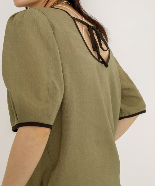 配色パイピングが魅力のブラウス配色パイピングを施したデザインと、立体感ある袖シルエットがポイントのブラウスが登場です。シンプルなデザインの中にパイピングが映えるフェミニンな一枚。ボリュームスリーブとバックリボンを採用し、こだわりあるデザインに。ベーシックな着丈でウエストイン、アウトどちらも楽しめるのも嬉しいポイントです。スタイリングバランスのよい着丈でボトムスを選ばずに着用できます。キレイめスカートからカジュアルなデニムまで、幅広いアイテムと好相性◎。ウエストインしたスタイルアップする着こなしが今年らしくておすすめ。落ち着いたカラー展開なので、秋口まで長くお使いいただけます。※商品の色はimageの着用写真ではなく、商品写真をご参照ください。--------------------裏地:なし透け感:アイボリーはややあり厚さ:薄め伸縮性:なし--------------------【お買いものにおすすめの便利機能!】★商品のお気に入り登録完売カラーの再入荷の時や、ラスト1点の時、セールになった時にお知らせします。★ブランドのお気に入り登録商品や再入荷、セール情報など、いち早くブランドのお得な情報を受け取ることができます。ぜひご活用ください!