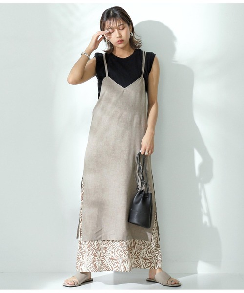 レイヤードデザインが旬顔のキャミソールワンピ。スッキリとした縦長効果を生むシルエットは存在感のあるスタイルに。【STYLING】1枚で着るのはもちろん、Tシャツやカットソーと合わせても◎バッグやサンダルを同系色で揃えれば内側のゼブラ柄が際立ちます。【DETAIL】華奢見えする細めのストラップとクロスデザインがフェミニンで大人っぽい雰囲気。薄手でこれからの季節にピッタリな涼し気な着心地です。※ストレッチなし※裏地あり※一部若干透ける素材になっております。※生地のデザイン上、実際の商品と画像とで柄の配置が異なる場合がございます。予めご了承ください。※商品のお取扱いに関しましては、商品に付属のアテンションカード、洗濯ネームをご覧ください。※モデル着用画像は光の当たり具合で色味が違って見える場合がございます。実物の商品の色味はマネキン着用画像をご参照ください。【お買いものをお楽しみいただく為に!】▼商品のお気に入り登録完売カラーの再入荷通知や、ラスト1点の通知、セールの通知も受け取ることができます。▼ブランドのお気に入り登録新商品や再入荷など、いち早くブランドのお得な情報を受け取ることができます。