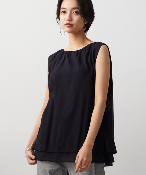 清涼感のある麻混のシャンブレー生地になります。肌ざわりのよい爽やかで、気持ちのいい風合い。やや薄手で軽く素朴な風合い。軽くてやわらかな生地を2枚重ねにしたノースリーブブラウスになります。裾にかけて程良く広がるAラインのシルエットが綺麗な一枚。どんなボトムスにも合わせやすいシンプルなデザインで、これからの季節に様々なシーンで活躍すること間違いなしのブラウスです。【完売カラー♥クリックのススメ】随時、入庫はしていますが人気のため完売しやすくなっています!!お気に入り登録の♥をクリックしていただくと通知がきて、すぐにご購入いただけます!あとは商品が届くのを待つだけ♪ぜひご登録ください♥【ブランドのお気に入り登録♥ススメ】新商品や再入荷など、最新情報・お得情報をいち早くお知らせします!ぜひご登録ください♥レディース/フリーサイズ/シャツ/インナー/無地/綿麻/透け感/薄手/バックデザイン
